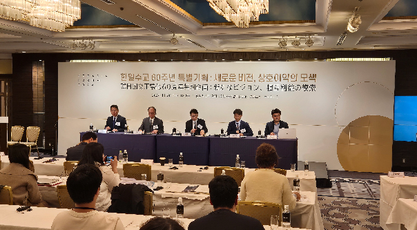 김윤 / 한일경제협회 회장(삼양홀딩스 회장), 소에야 요시히데 / 게이오대 법학부 명예교수, 지시마 도모노부 / 한남대 경영학부 교수